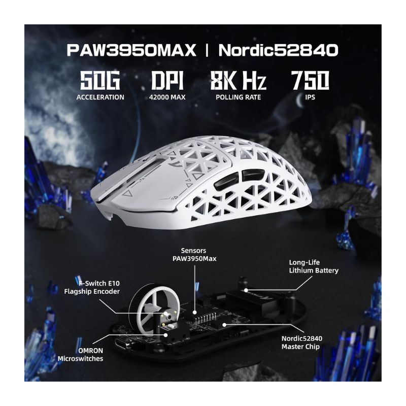 | Sensor | PixArt PAW3950MAX Optical Sensor |