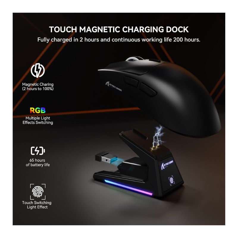 Attack Shark X1 RGB Tri-mode Gaming Mouse with Charging Dock – Black