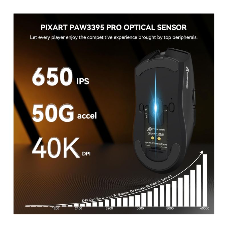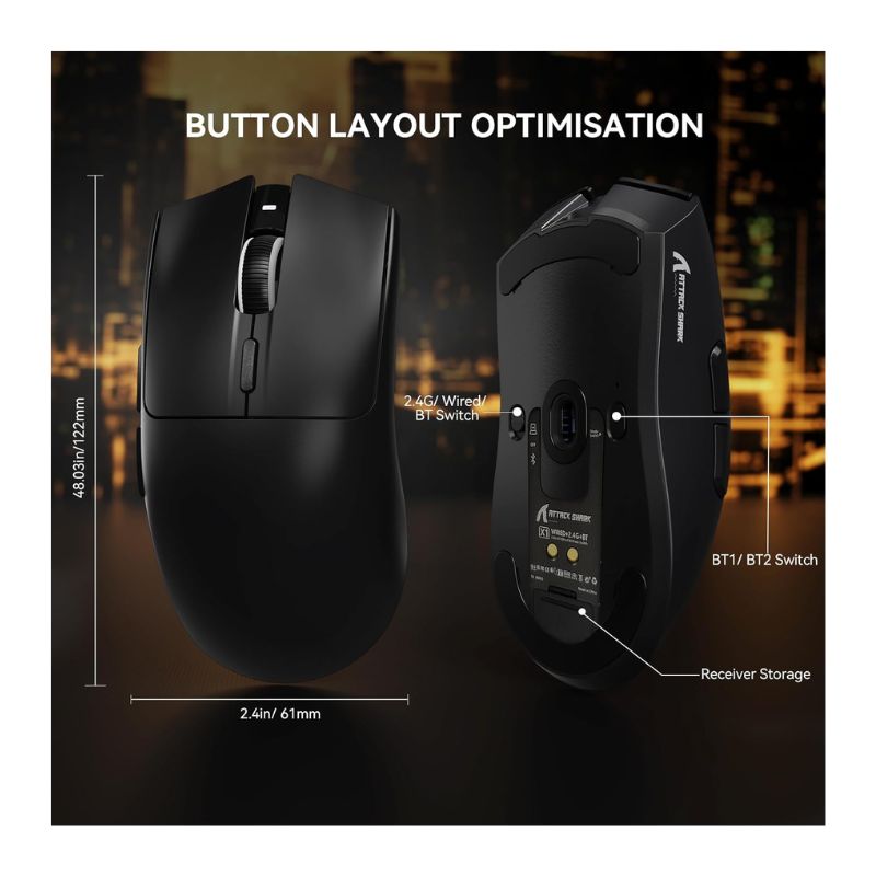 Dominate the competition with the Attack Shark X1 Tri-mode Wireless Gaming Mouse (Black), engineered for extreme performance and precision. This mouse is an ultra-lightweight marvel, weighing in at just 53g, making fast, effortless flick shots a reality. Designed for competitive and esports gaming, the X1 features a cutting-edge sensor and flexible connectivity.