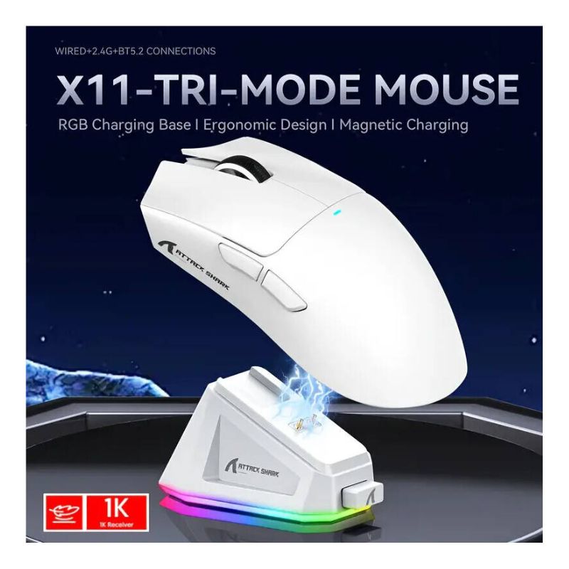 Upgrade your gaming rig with the **Attack Shark X11 RGB Wireless Gaming Mouse (White)** — a premium wireless mouse engineered for precision, comfort, and style. Whether you’re into FPS, MOBA, battle royale, or competitive esports, the X11 delivers smooth response, reliable tracking, and vibrant RGB lighting to match your setup.