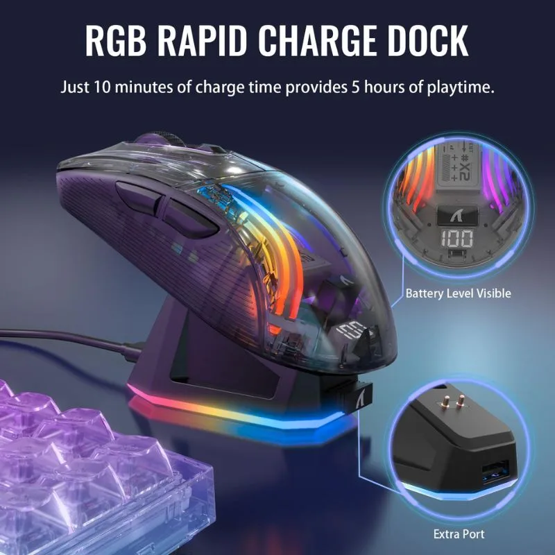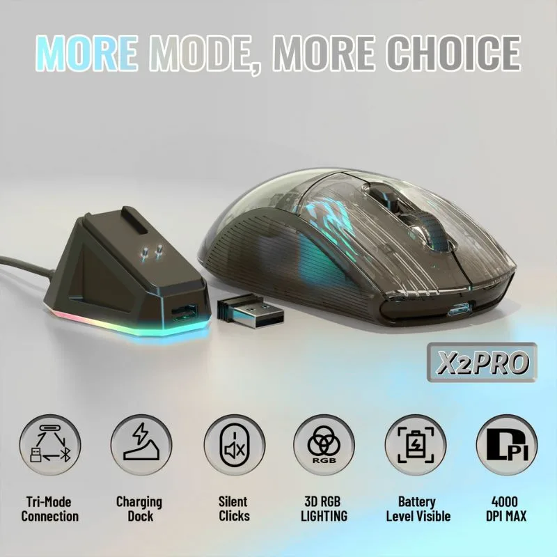The Attack Shark X2 Pro delivers speed and flair with its transparent black design and built-in RGB lighting. Featuring an optical sensor up to 4000 DPI and ultra-lightweight shell, this gaming mouse is perfect for precision play and long hours of use.