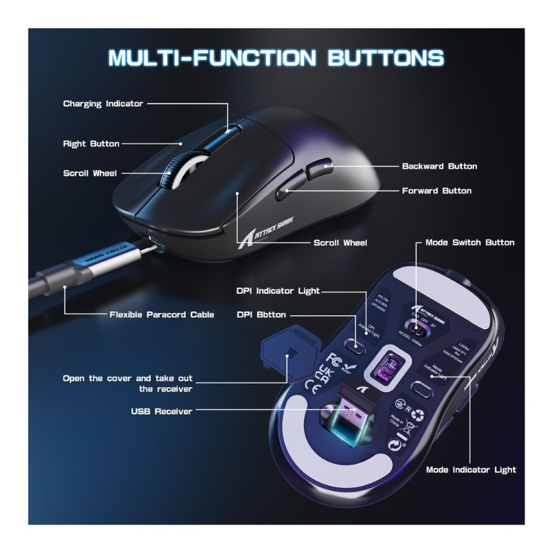 The Attack Shark X3 Max is a performance-focused wireless gaming mouse designed for serious competitive play. Featuring the powerful PixArt PAW3950 sensor with up to 26000 DPI, it offers exceptional tracking accuracy, fast response, and consistent control. The customizable RGB lighting enhances its aggressive black gaming design.