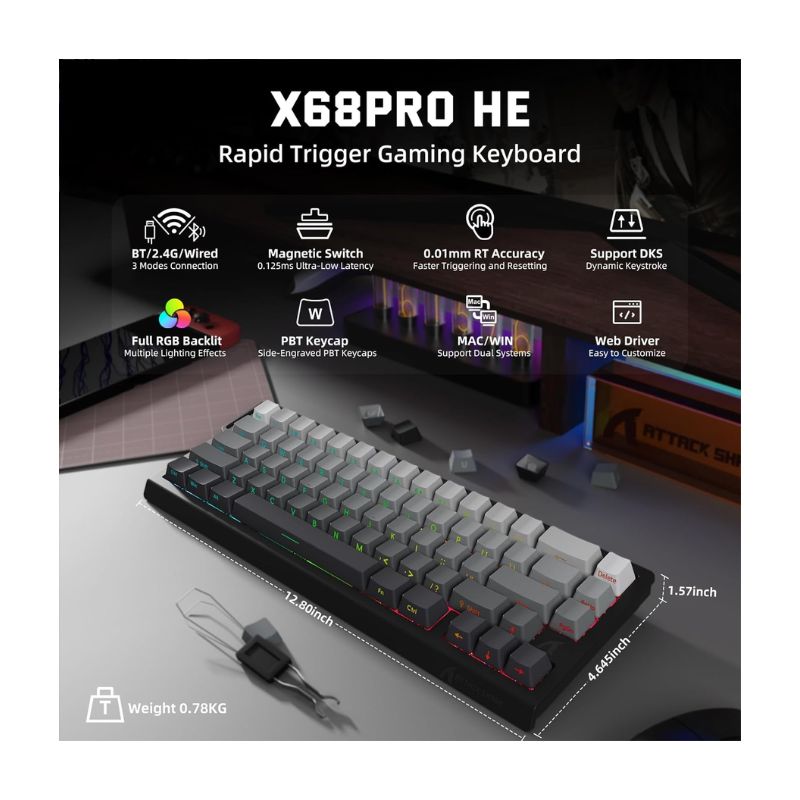 Dominate the leaderboard with magnetic speed. Order the ATTACK SHARK X68 PRO HE today from Zaytoona.com.