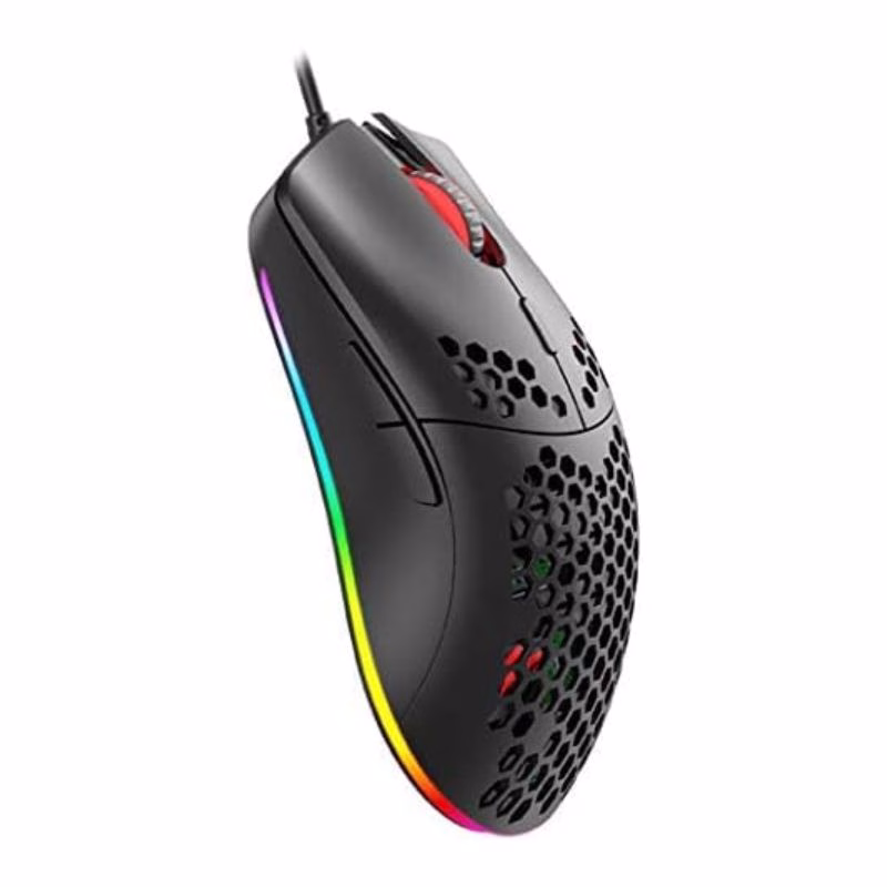 The Gamenote MS1023 Gaming Mouse features a honeycomb design, RGB lighting, 6 programmable buttons, and 6400 DPI for precise gaming.