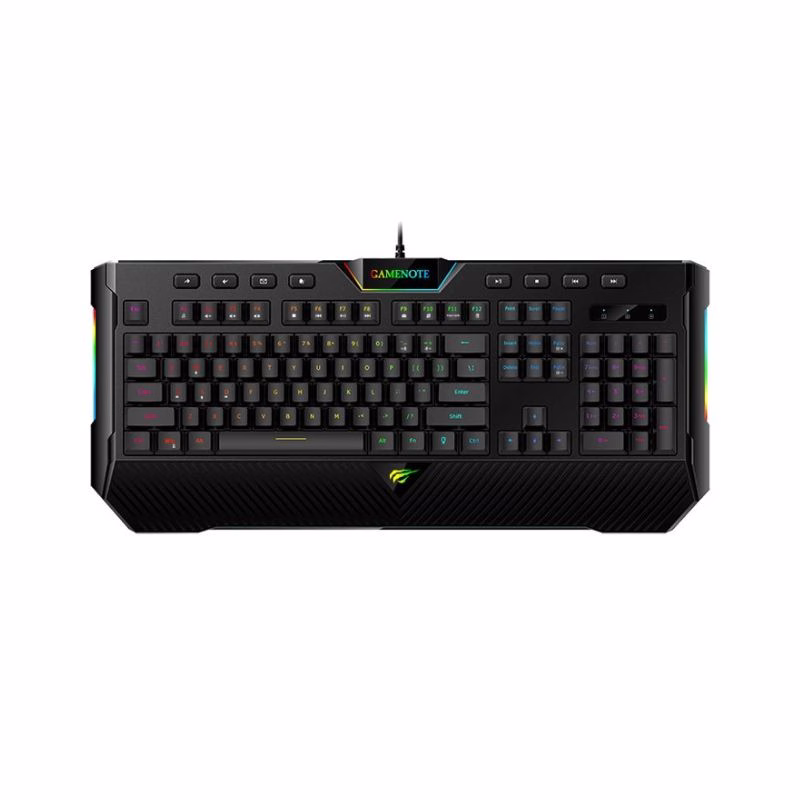 The HAVIT HV-KB486 offers a semi-mechanical feel, customizable RGB lighting with 8 modes and 4 brightness levels, and a 104-key layout for a versatile gaming experience.