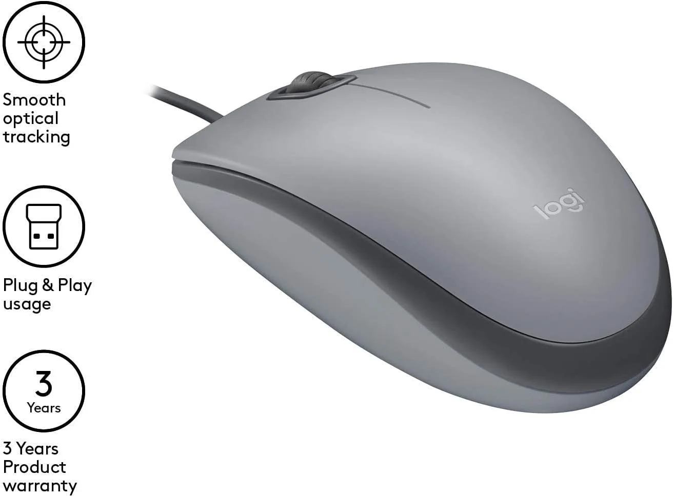 Elevate your computing experience with the Logitech M110 Mid Grey mouse. This wired mouse combines style and functionality with its sleek design and precise optical tracking. The ambidextrous shape ensures comfort for all users, making it a versatile choice for daily tasks and activities.