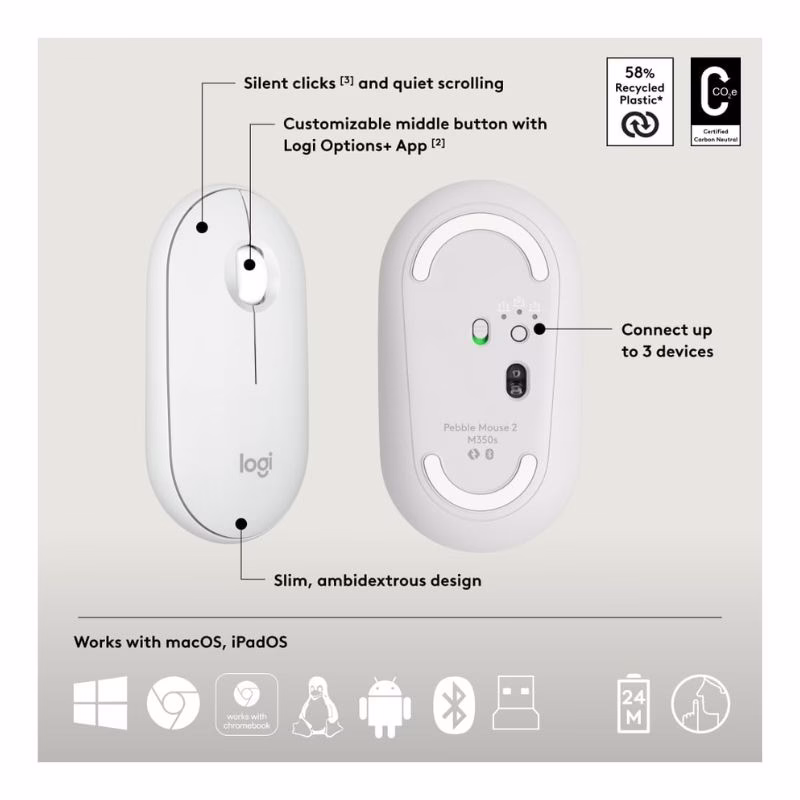 Logitech Pebble 2 Combo Wireless Gaming Keyboard and Mouse – White