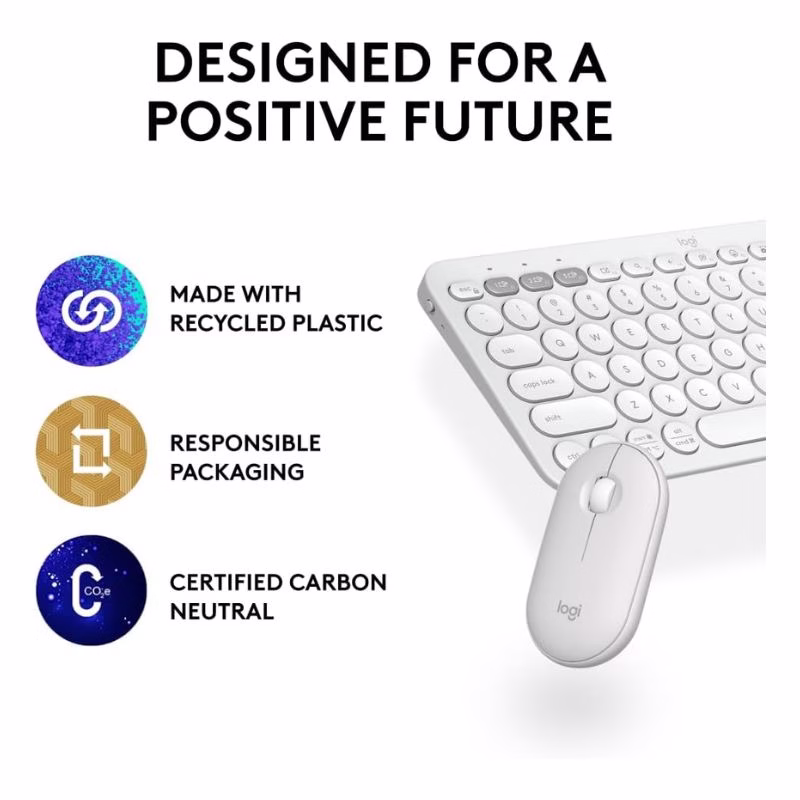 The Logitech Pebble 2 Combo is the versatile duo for work and casual gaming. This set includes a quiet and portable keyboard and mouse, designed for smooth, low-noise operation. Its minimalist design is perfect for both a clean desktop and travel.