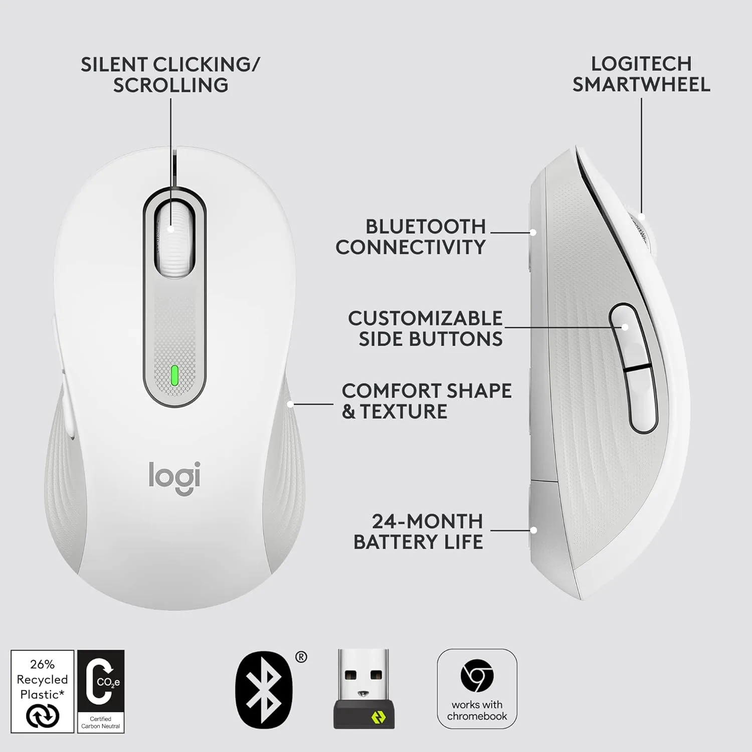 Enjoy the sound of silence. The Logitech M110 Silent gives you plug-and-play comfort, reliability and silent control of your computer. You and those around you will enjoy a quiet experience thanks to a 90% noise reduction with the same click feel. The responsive, smooth cursor control offers precise tracking and easy text selection, while the full-size, ambidextrous design fits comfortably into either right or left palm. This simple to set up and use mouse has no software to install. Just plug the cable into a USB port and use it right away.