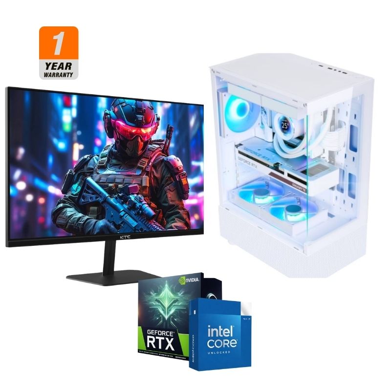 This combo is optimized with 16GB of 6000MHz DDR5 memory and a lightning-fast 1TB NVMe Gen4 SSD** for near-instant boot times. To match the raw power of the PC, we’ve included the KTC H27T7P QHD 200Hz gaming monitor, providing crystal-clear 1440p resolution at an incredible refresh rate. The Thermalright Aqua Elite v6 360 liquid cooler keeps temperatures low while the SAMA Neview 3321 white case provides a sleek, modern look for your battle station.