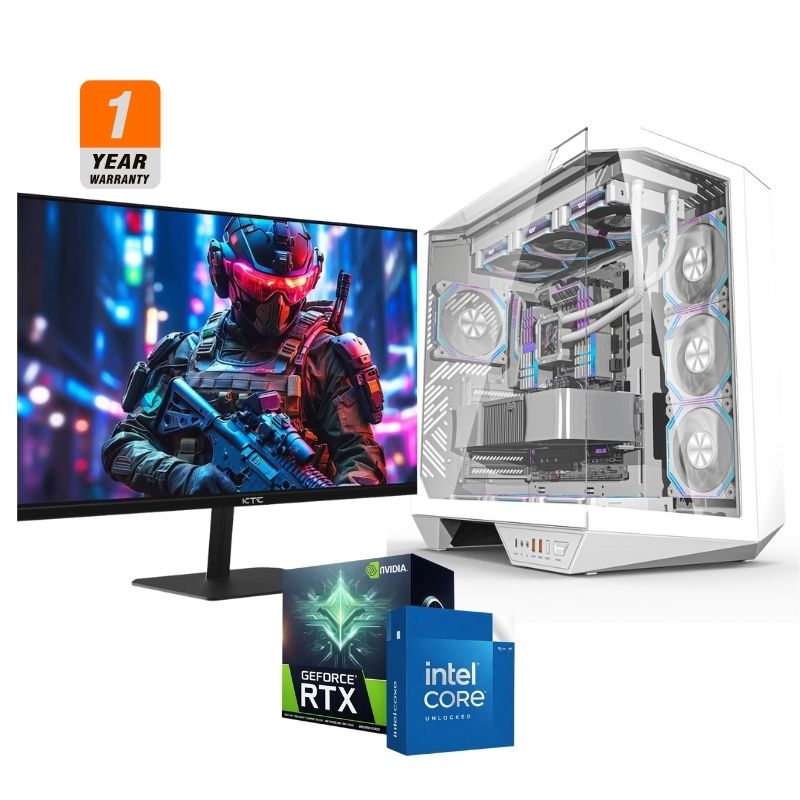 This flagship setup is anchored by the Asus ROG Strix B760-A Gaming motherboard and packed with 32GB of Patriot Viper Venom RGB DDR5 (6400MHz) for lightning-fast responsiveness. Experience ultra-smooth visuals on the included KTC H27T7P QHD 200Hz gaming monitor. To keep the “Ghost” running cool, we’ve equipped it with the Thermalright Warframe 360 White AIO (featuring an LCD screen) and housed it in the stunning **DARKFLASH DY470 White** panoramic case.