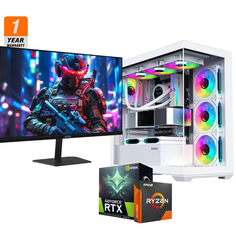 This combo features 6GB of Patriot Viper Venom RGB DDR5 memory and a massive 1TB NVMe Gen4 SSD for near-instant loading times. To ensure you see every frame of the action, we’ve included the KTC H24F8 180Hz gaming monitor. Housed in the stunning Sama SV-01 White aquarium-style case and cooled by the Thermalright Assassin King 120, this rig offers a premium aesthetic that keeps its cool under pressure.