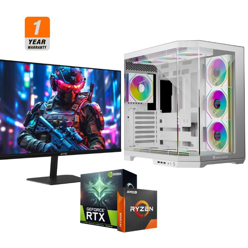 Equipped with 16GB of Patriot Viper Venom RGB DDR5 memory and a lightning-fast 1TB NVMe Gen4 SSD, this system handles multitasking and heavy loads with ease. To complete the experience, this combo includes the KTC H24F8 FHD 180Hz gaming monitor for ultra-smooth, tear-free visuals. Stay frosty with the Thermalright Aqua Elite v6 360** liquid cooler, all housed in the stunning Jungle Leopard Galaxy X4 White case.