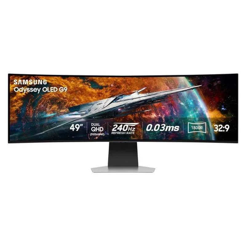 Experience true gaming immersion with the Samsung Odyssey OLED G9 49” 240Hz Curved Gaming Monitor. This 49-inch ultra-wide curved monitor features a stunning OLED panel, blazing-fast 240Hz refresh rate, and Dual QHD (DQHD) resolution for uncompromising clarity and speed.