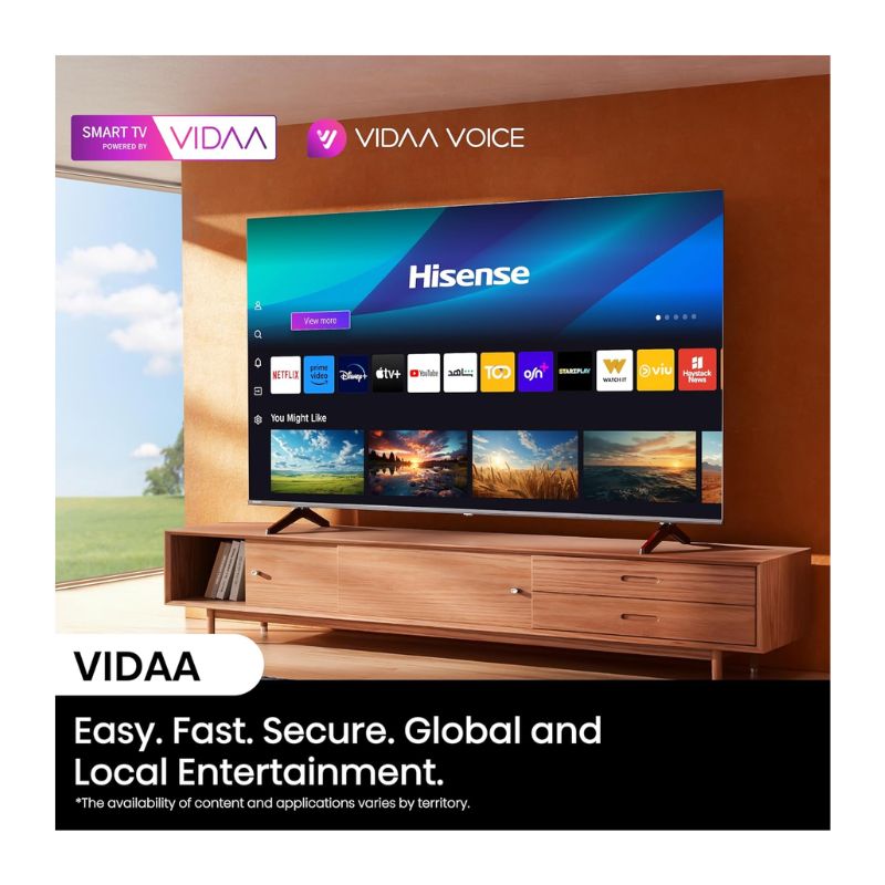 Engineered for performance, the 58A61Q includes Smooth Motion with MEMC and AI Sports Mode, ensuring that high-speed sports and action sequences remain fluid and sharp. Gamers can enjoy the advantages of Game Mode Plus for reduced input lag. The intuitive VIDAA smart platform brings all your favorite apps together, including Shahid, Anghami, YouTube, Netflix, and Disney+, while built-in Voice Control and Share to TV features make navigation and casting effortless.