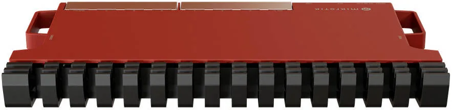 The new enclosure is a spectacular innovation on its own. It’s the same form-factor you might have seen with our highly sought-after RB5009 devices. It has several extremely useful properties. First of all, the case acts as a massive heat-sink, protecting your setups from overheating. But here’s the fun part: it comes with everything you need to fit up to four of these routers in a single 1U rackmount space.