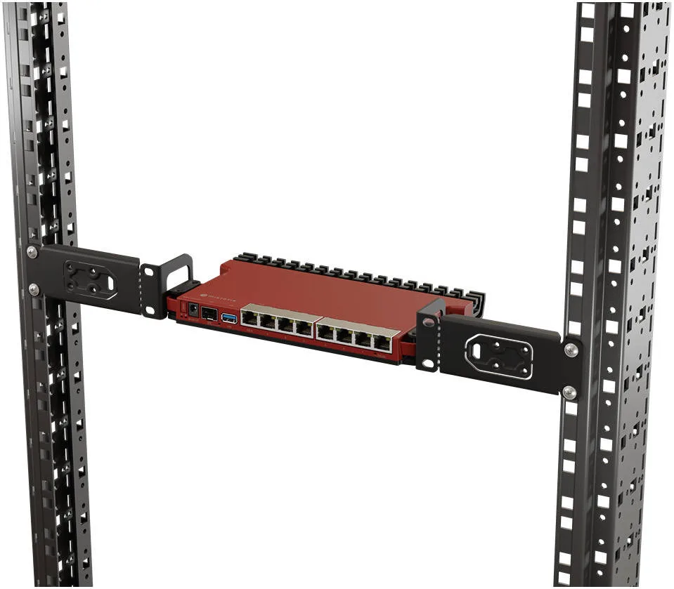 L009 is more than just a router. This product line is up to 4 times faster than RB2011, it has a modern ARM CPU with container support, an innovative enclosure that allows mounting up to four routers in a single 1U space, more RAM, PoE, and 2.5G SFP support. This version comes with 1U rackmount accessories.