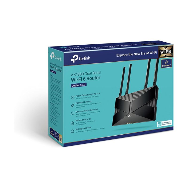 The TP-Link Archer AX23 brings the power of Wi-Fi 6 technology to your home at an incredible value. Delivering super-fast dual-band speeds up to 1.8 Gbps (1201 Mbps on 5 GHz and 574 Mbps on 2.4 GHz), this router is designed for the modern household. Whether you are streaming 4K movies, downloading large files, or hosting intense gaming sessions, the AX23 ensures a smooth, lag-free experience.