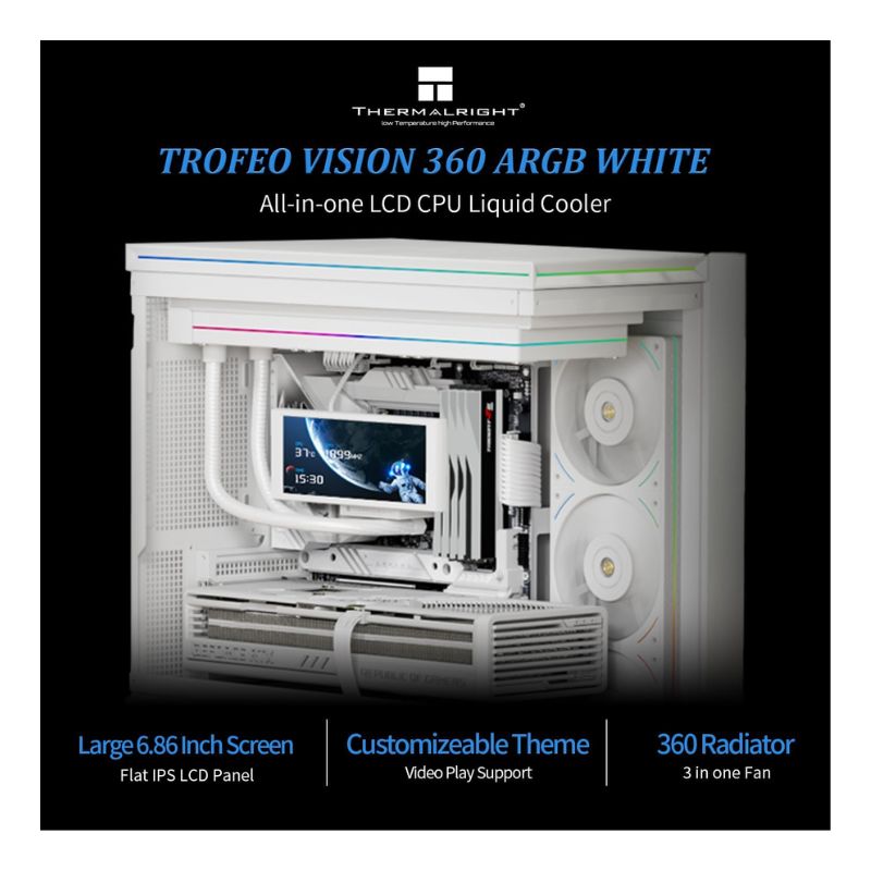 Upgrade your build with powerful cooling and a full-length LCD display. Purchase the Thermalright Trofeo Vision 360 ARGB White today from