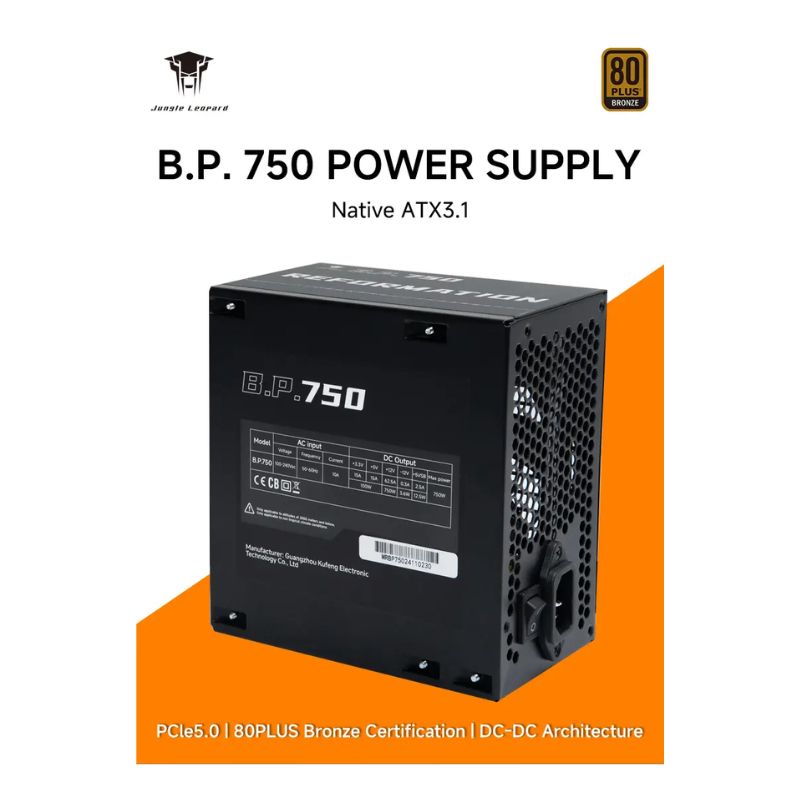 Jungle Leopard BP750 750W 80+ Bronze ATX3.1 PCIe 5.0 Full-Modular Power Supply – Black