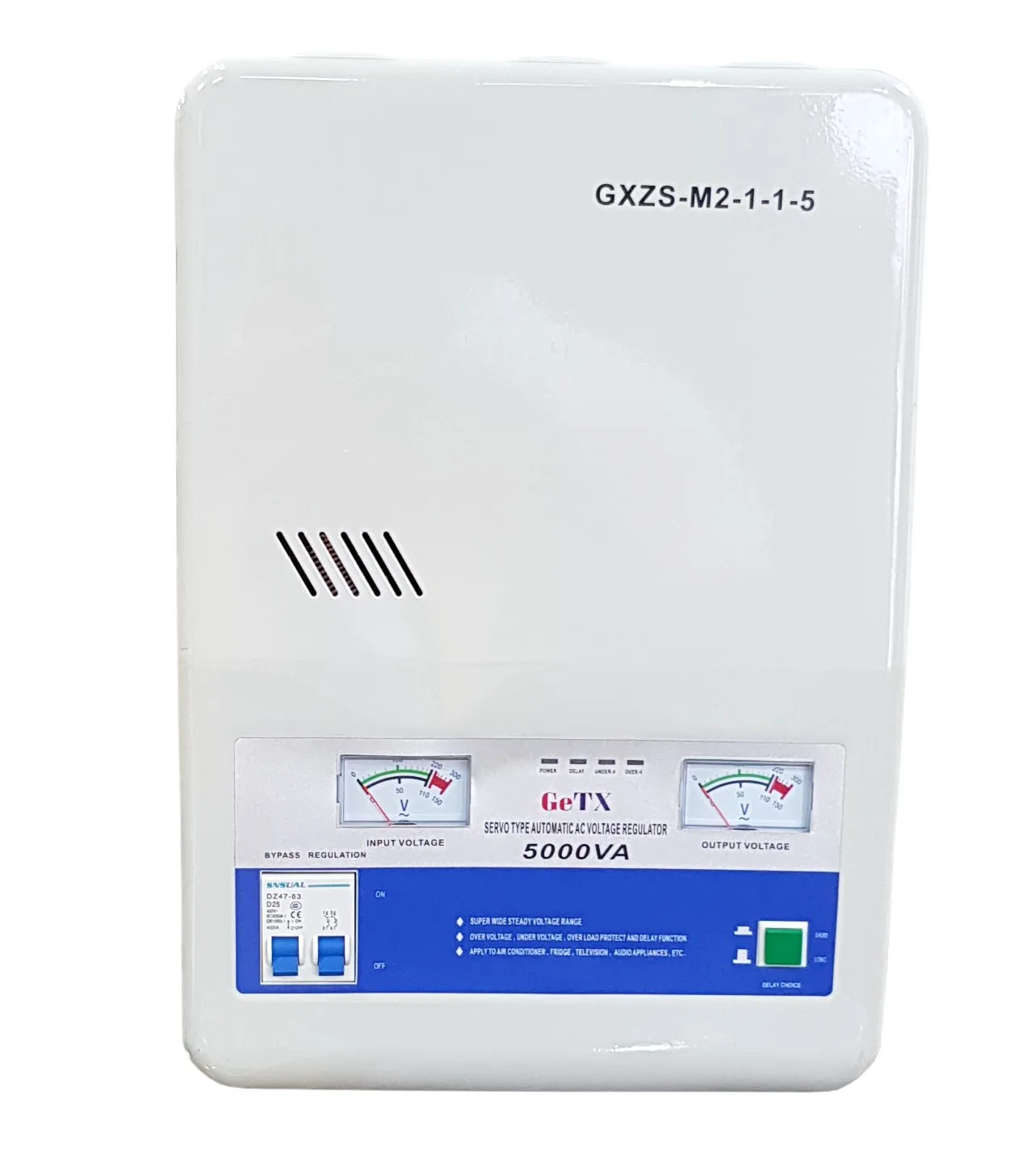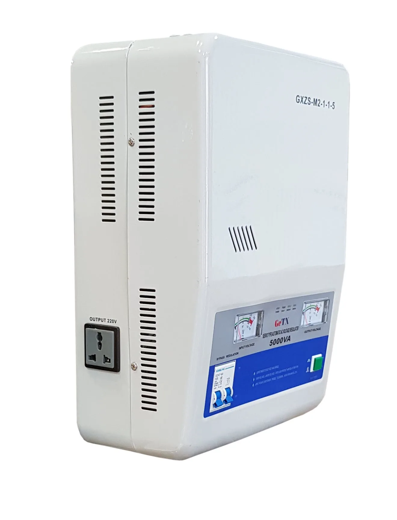 The GeTX Stabilizer Servo motor Type 5000va 1Phases Wall Mount Cabinet Input 80v-260v,Output 220v,UK Socket GXZS-M2-1-1-5 is a high-quality voltage stabilizer that provides reliable and efficient protection for your valuable electronic equipment. It features a servo motor design that provides fast and accurate voltage regulation, even during large fluctuations in input voltage.